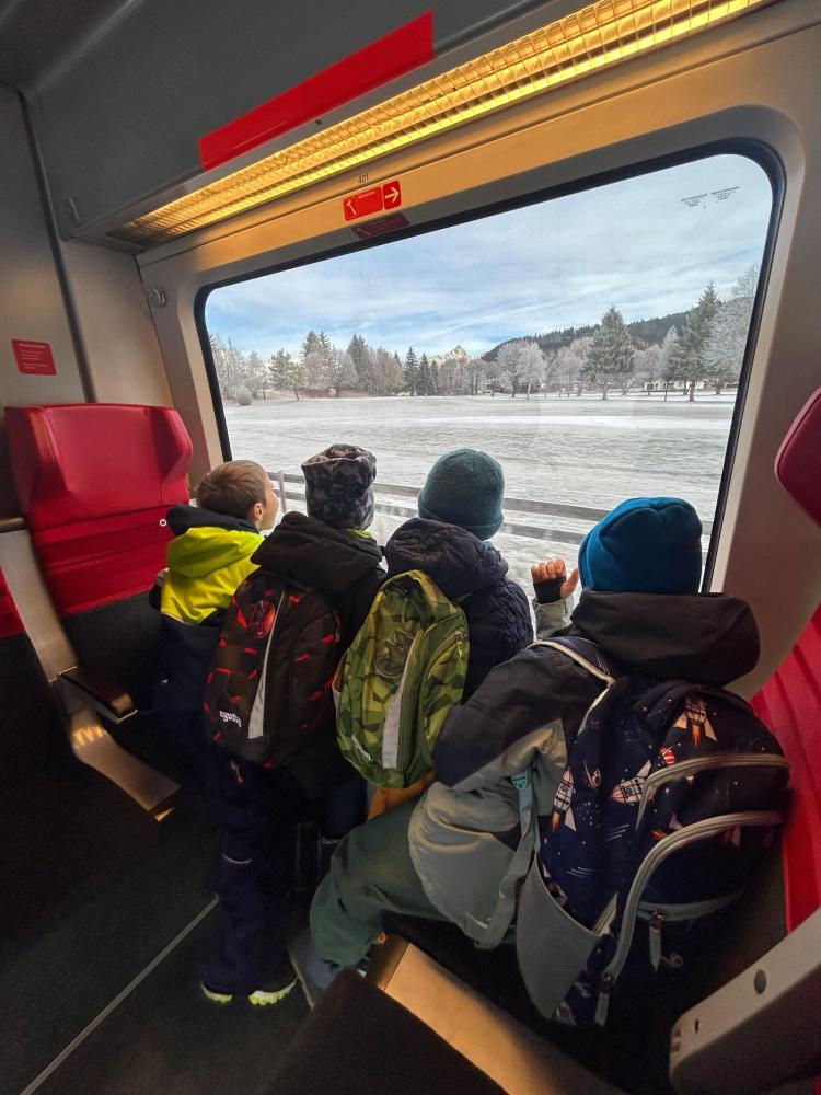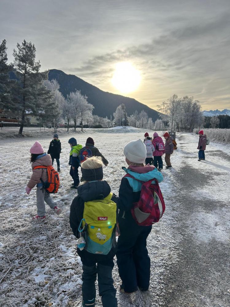 Ausflug nach Seefeld von Sophia Gruber 16. Dezember 2025 1a Die Klasse 1a fuhr mit dem Zug nach Seefeld und machte dort eine kalte Winterwanderung, um die Eichhörnchen zu füttern.