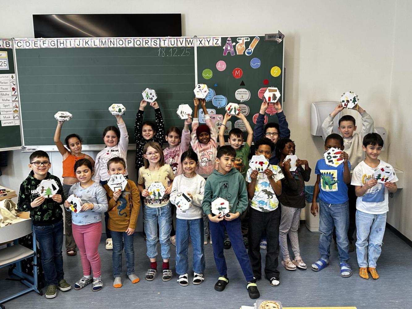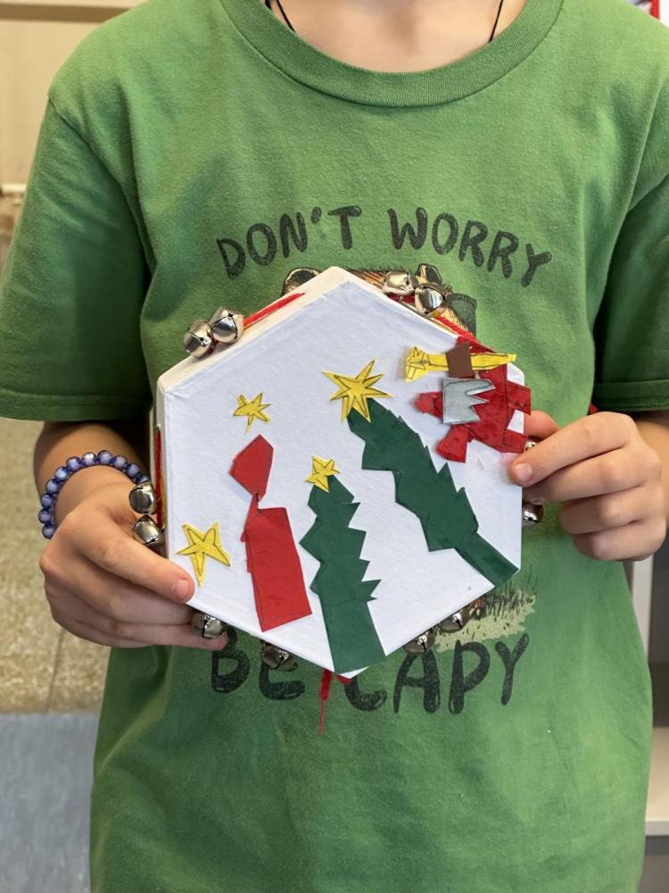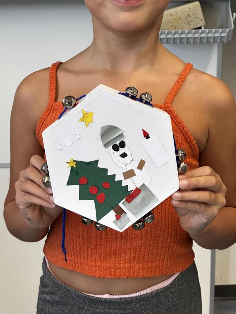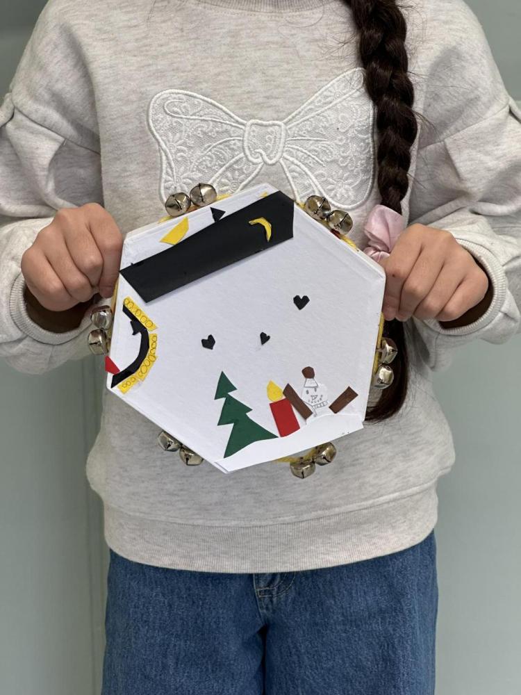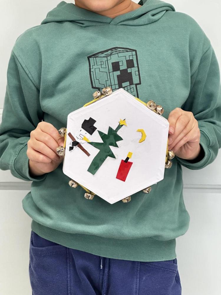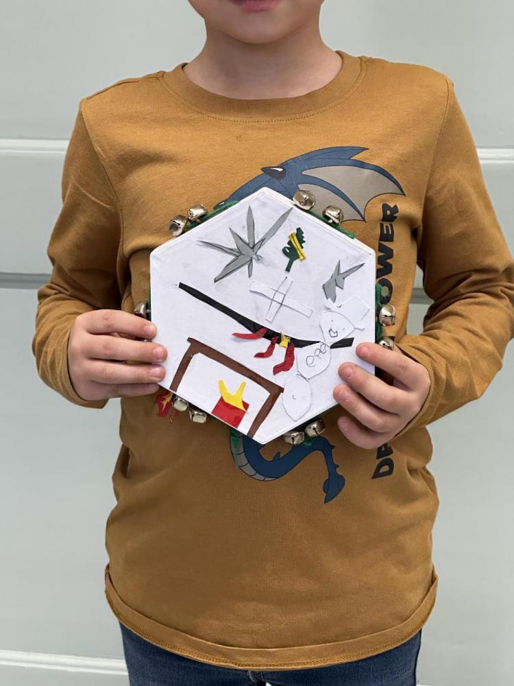 Die Kinder der 2a haben im Werkunterricht eigene Tamburine gebastelt. Zuerst gestalteten sie den Vordergrund mit Papierstücken in verschiedenen Farben: Sie zeichneten, schnitten und klebten kleine Bilder auf die Trommelfläche. Danach vervollständigten sie den Rand des Tamburins mithilfe von Wolle und Schellen. Zum Abschluss durften die Kinder ihre fertigen Tamburine ausprobieren und hatten dabei jede Menge Spaß.
