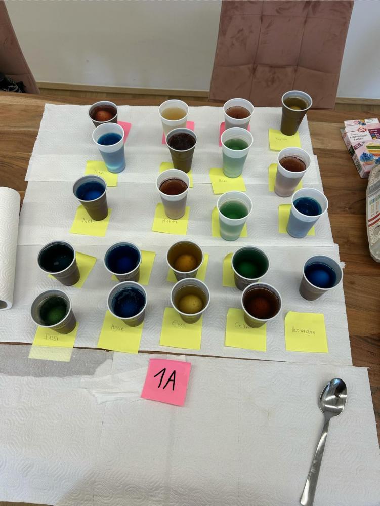 Ostereier färben von Leticia Bachmann 28. März 2026 1a Diese Woche wurde es in der 1A besonders kreativ: Die Schülerinnen und Schüler haben mit viel Begeisterung Ostereier gefärbt und liebevoll Osterkörbe gebastelt. Dabei hatten alle großen Spaß!